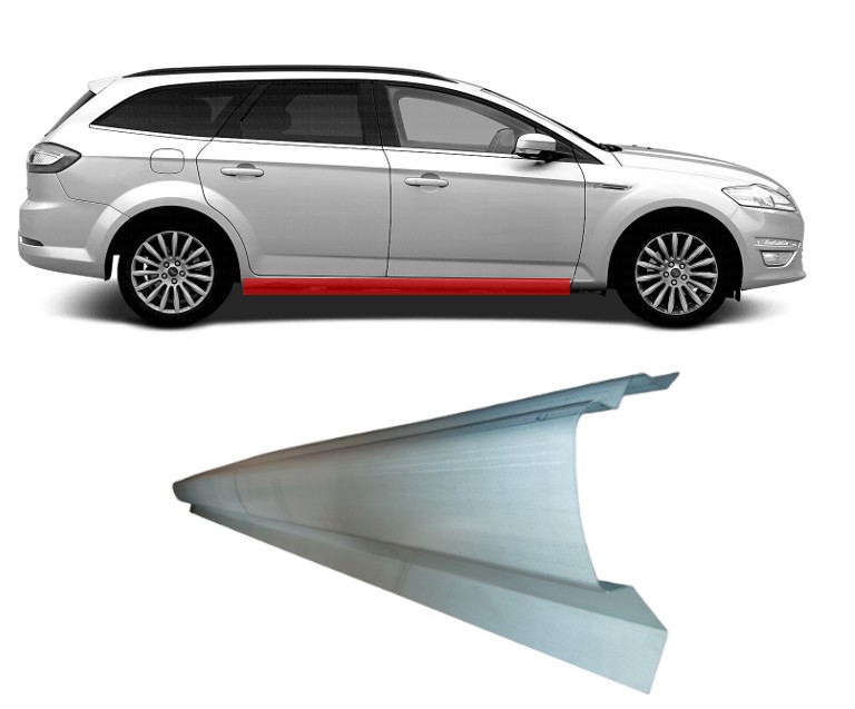 Ford Mondeo (2007- 2015) door sill. Good quality under door sills online. Purchase new Ford Mondeo (2007- 2015) door sills on the online store – remparta.lt or in the shop Veiverių st. 47A, Kaunas, Aleksotas (Aleksotas market). Rusted or corroded (rotted) door sills can be replaced with full-original sills or universal sills which cover the rusted door sill area or other car body parts. Our online shop offers a wide variety of sills and short delivery period to your door step. Our welded sills‘ asortiment (metal plates for area under doors – hodoor) is full of galvanized, primed and tin-plated sills. Inside and outside car repairing sills are sold in Kaunas but also welding sills can be delivered anywhere in Lithuania by a courier. If you have any questions related to Ford Mondeo (2007- 2015) sills you need, do not hesitate to contact our team for more information! Contacts can be found on Remparta.lt.
