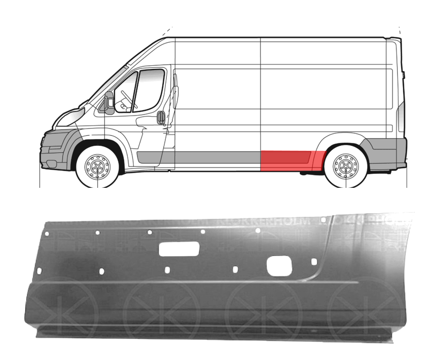 Fiat Ducato/Citroen Jumper/Peugeot Boxer (2006- 2014) Skarda prieš galinį ratą (ilgo, kairė), Centre Distance [mm]: 4035, su posūkio skyle