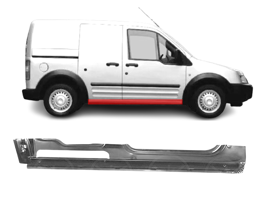 Ford Transit Connect (2003-/2006-/2009-) door sill. Good quality under door sills online. Purchase new Ford Transit Connect (2003-/2006-/2009-) door sills on the online store – remparta.lt or in the shop Veiverių st. 47A, Kaunas, Aleksotas (Aleksotas market). Rusted or corroded (rotted) door sills can be replaced with full-original sills or universal sills which cover the rusted door sill area or other car body parts. Our online shop offers a wide variety of sills and short delivery period to your door step. Our welded sills‘ asortiment (metal plates for area under doors – hodoor) is full of galvanized, primed and tin-plated sills. Inside and outside car repairing sills are sold in Kaunas but also welding sills can be delivered anywhere in Lithuania by a courier. If you have any questions related to Ford Transit Connect (2003-/2006-/2009-) sills you need, do not hesitate to contact our team for more information!  Contacts can be found on Remparta.lt.