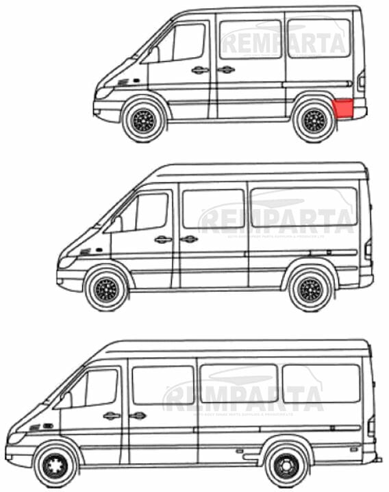 MB Sprinter/ VW LT (95-) Skarda už galinio rato (trumpo, kairė)