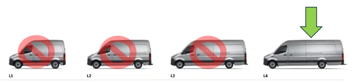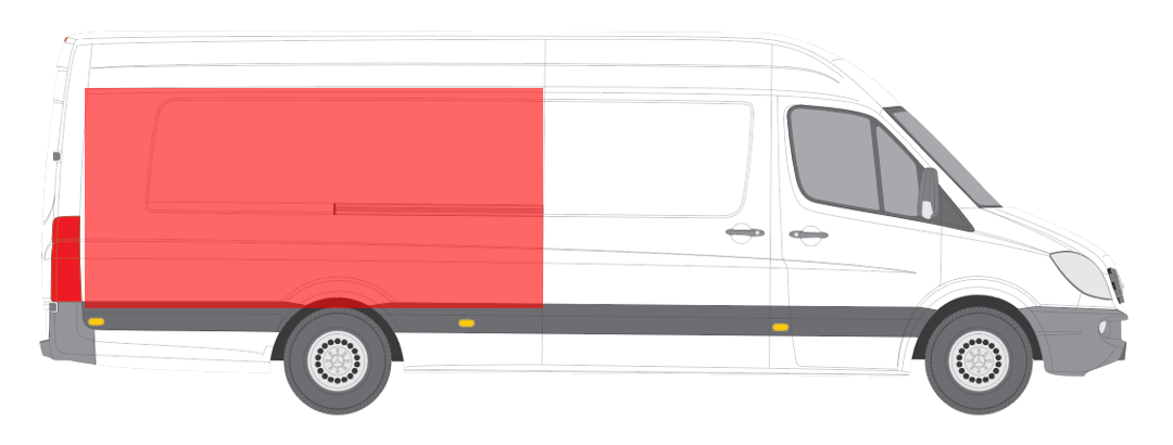 MB Sprinter (2006- 2013)/VW Crafter (2005- 2017) Galinis sparnas virš moldingo, extra ilgam kėbului (ratų bazė [cm] 470), dešinės (keleivio) pusės.