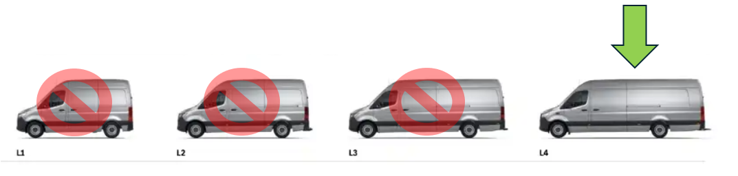 MB Sprinter (2006-2013)/ VW Crafter (2005-2017) Aizmugurējā spārna iekšējā daļa aiz aizmugurējā riteņa, labā (pasažiera) pusē, īpaši garam korpusam (garenbāze [cm] 470). Garums [cm] 130, augstums [cm] 29
